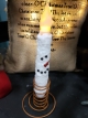 Snowman Timer Taper features a battery operated timer taper with a white wax coating with a snowman face. The candle stays on for 6 hours and then goes off for 18 hours. Requires 2 AA batteries (not included).
